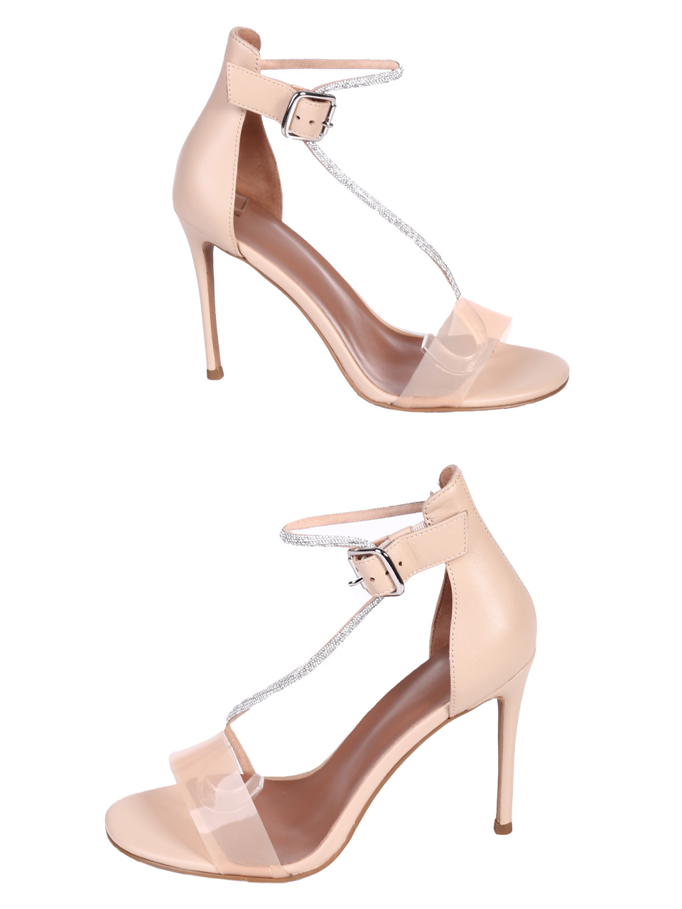Елегантни дамски сандали на висок ток от естествена кожа и силикон. Предлагат се в бежов цвят, с декоративни камъни. Вътрешната част е от естествена кожа.