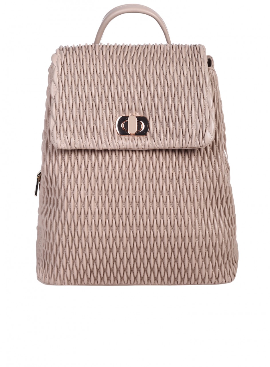 Ежедневна дамска раница от еко кожа. Предлага се в бежов цвят, с регулируеми дръжки. Раницата има три отделения, с един вътрешен джоб.